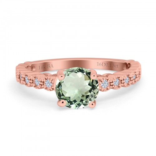 14K Rose Gold 1.16ct Round 6.5mm G SI Natural Green Amethyst Diamond Engagement Wedding Ring Size 6.5