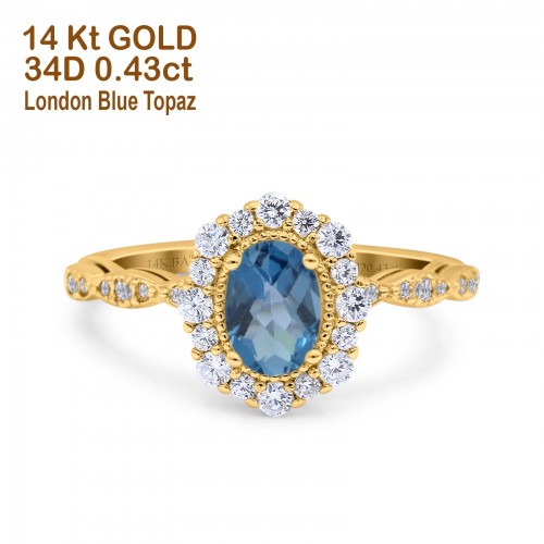 14K Rose Gold 1.19ct Vintage Art Deco Halo Oval 7mmx5mm G SI London Blue Topaz Diamond Engagement Wedding Ring Size 6.5