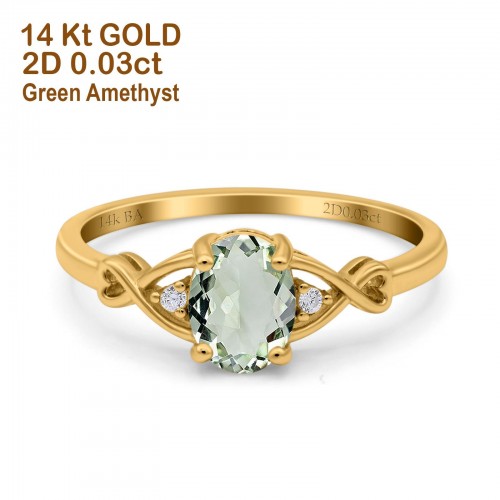 14K Rose Gold 1.24ct Oval Filigree Infinity 8mmx6mm G SI Natural Green Amethyst Diamond Engagement Wedding Ring Size 6.5