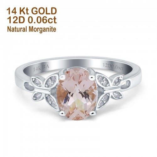 14K Rose Gold 1.27ct Oval 8mmx6mm Butterfly Accent G SI Natural Morganite Diamond Engagement Wedding Ring Size 6.5
