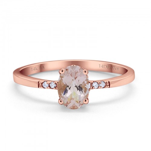 14K Rose Gold 1.28ct Oval 8mmx6mm G SI Natural Morganite Diamond Engagement Wedding Ring Size 6.5