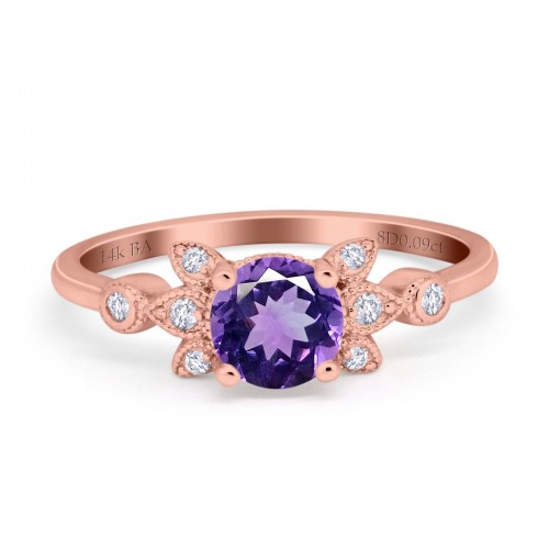 14K Rose Gold 1.37ct Round 7mm G SI Natural Amethyst Diamond Engagement Wedding Ring Size 6.5