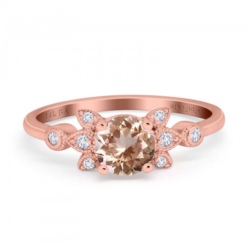 14K Rose Gold 1.37ct Round 7mm G SI Natural Morganite Diamond Engagement Wedding Ring Size 6.5