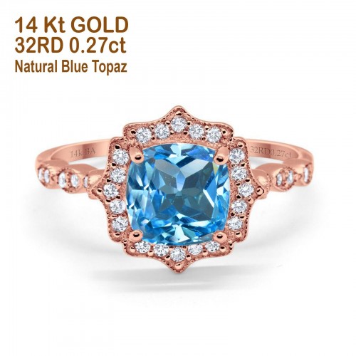 14K Rose Gold 1.37ct Round Three Stone Vintage 6mm G SI Nano Blue Sapphire Diamond Engagement Wedding Ring Size 6.5