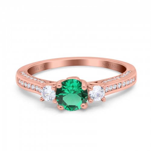14K Rose Gold 1.37ct Round Three Stone Vintage 6mm G SI Nano Emerald Diamond Engagement Wedding Ring Size 6.5