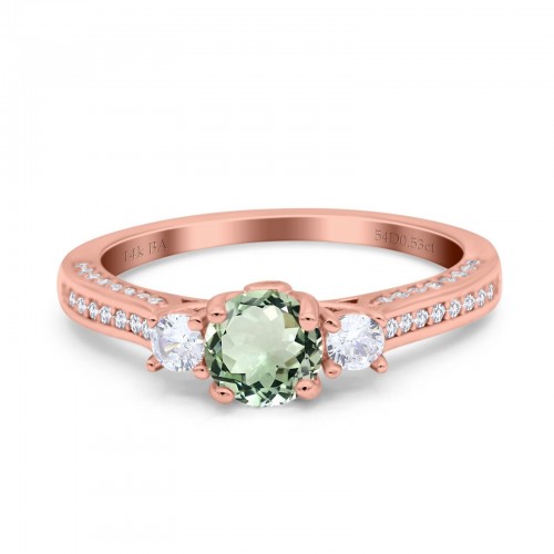 14K Rose Gold 1.37ct Round Three Stone Vintage 6mm G SI Natural Green Amethyst Diamond Engagement Wedding Ring Size 6.5