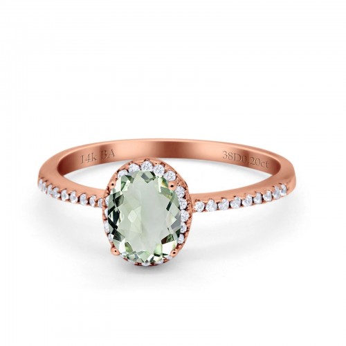14K Rose Gold 1.41ct Oval 8mmx6mm Fashion Accent G SI Natural Green Amethyst Diamond Engagement Wedding Ring Size 6.5