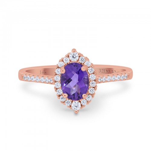14K Rose Gold 1.53ct Oval Natural Amethyst G SI Diamond Engagement Ring Size 6.5