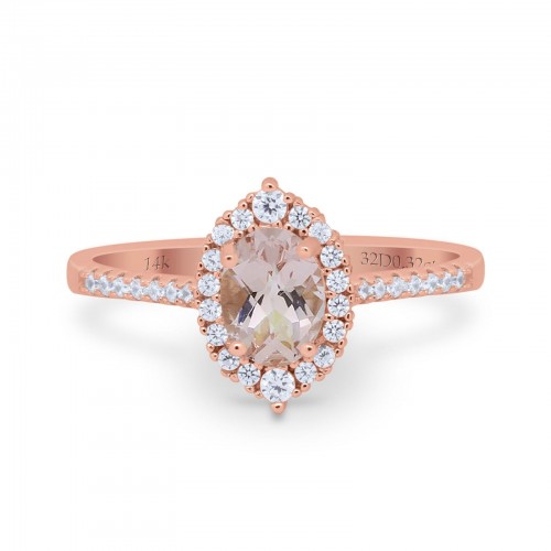 14K Rose Gold 1.53ct Oval Natural Morganite G SI Diamond Engagement Ring Size 6.5