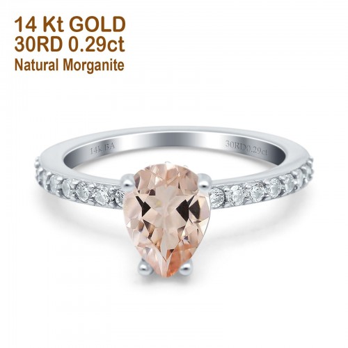 14K Rose Gold 1.54ct Teardrop Pear Accent 8mmx6mm G SI Natural Morganite Diamond Engagement Wedding Ring Size 6.5