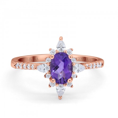 14K Rose Gold 1.54ct Vintage Oval 8mmx6mm G SI Natural Amethyst Diamond Engagement Wedding Ring Size 6.5