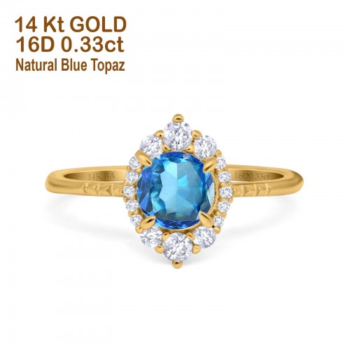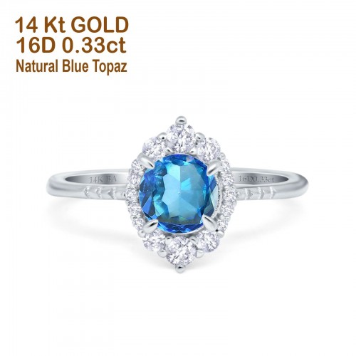 14K Rose Gold 1.61ct Halo Vintage Round 7mm G SI Natural Blue Topaz Diamond Engagement Wedding Ring Size 6.5