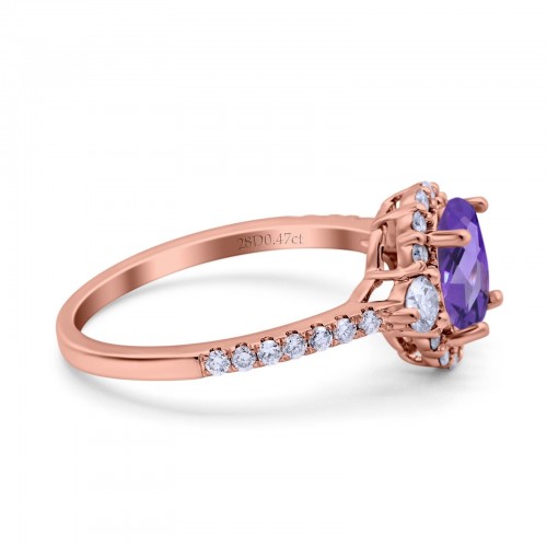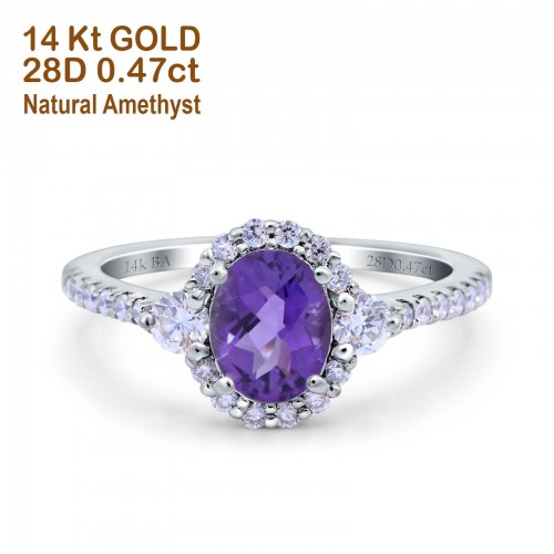 14K Rose Gold 1.68ct Oval Natural Amethyst G SI Diamond Engagement Ring Size 6.5