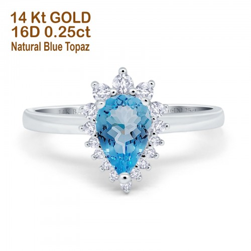 14K Rose Gold 2.00ct Teardrop Pear 9mmx7mm G SI Natural Blue Topaz Diamond Engagement Wedding Ring Size 6.5
