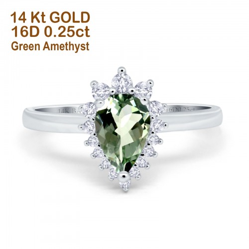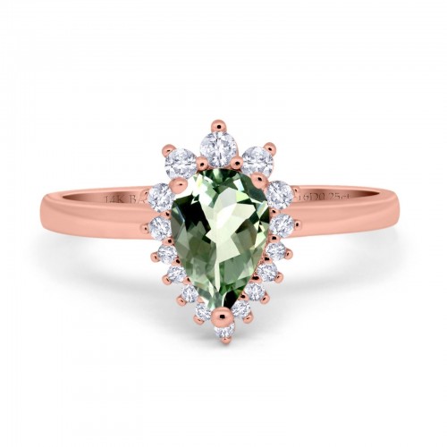 14K Rose Gold 2.00ct Teardrop Pear 9mmx7mm G SI Natural Green Amethyst Diamond Engagement Wedding Ring Size 6.5