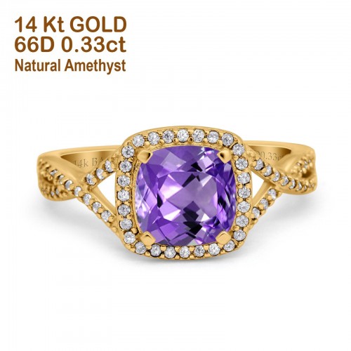 14K Rose Gold 2.37ct Cushion Infinity Shank 8mm G SI Natural Amethyst Diamond Engagement Wedding Ring Size 6.5