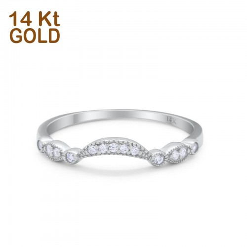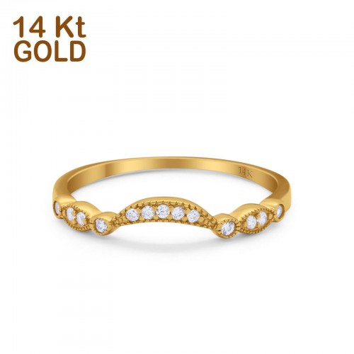 14K Rose Gold Art Deco Curved Wedding Band Eternity Ring Simulated Cubic Zirconia Size-7