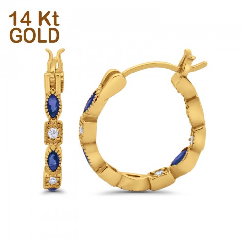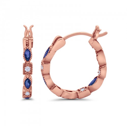 14K Rose Gold Art Deco Hoop Earrings Marquise Round Simulated Blue Sapphire CZ