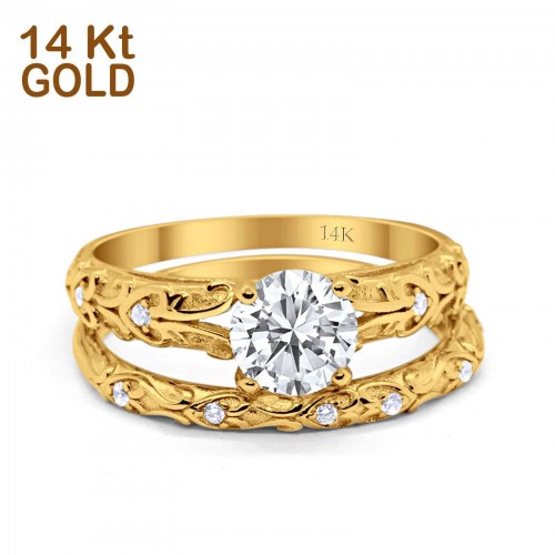 14K Rose Gold Art Deco Round Two Piece Bridal Set Ring Engagement Band Simulated CZ Size 7