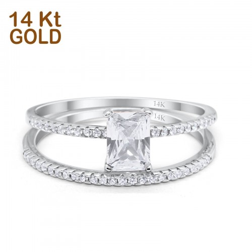 14K Rose Gold Art Deco Two Piece Wedding Radiant Simulated Cubic Zirconia Ring Size-7