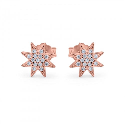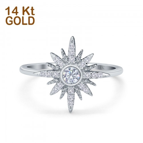 14K Rose Gold Cluster Starburst Ring Round Bridal Simulated CZ Wedding Engagement Ring Size-7 14K Gold