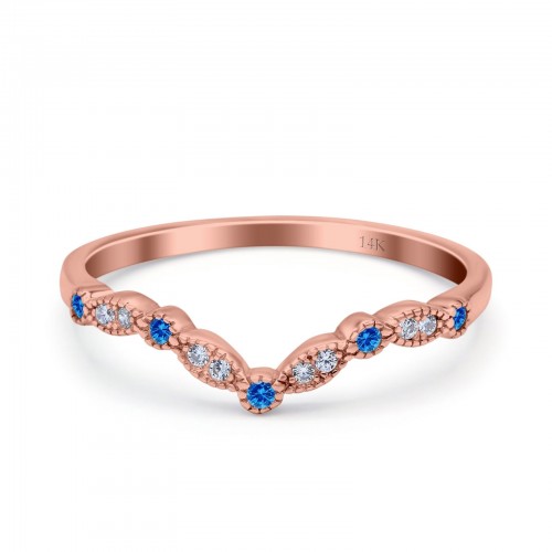 14K Rose Gold Curved Marquise Half Eternity Stackable Ring Simulated Blue Topaz CZ Size-9