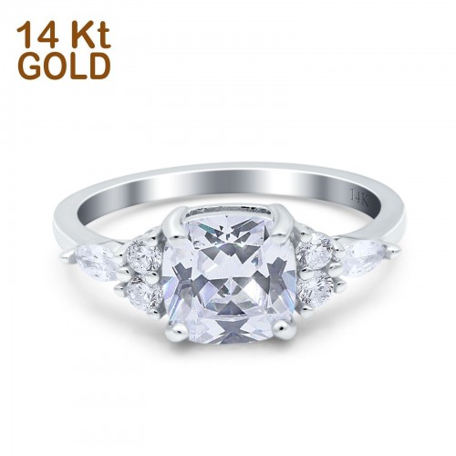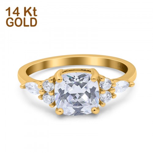 14K Rose Gold Cushion Cut Art Deco Bridal Wedding Engagement Ring Simulated CZ Size-7 14K Gold