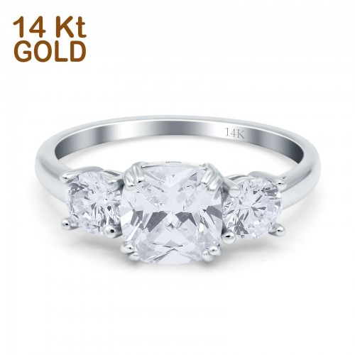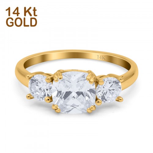 14K Rose Gold Cushion Three Stone Bridal Wedding Engagement Ring Simulated CZ Size-7 14K Gold