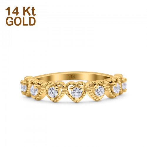 14K Rose Gold Half Eternity Heart Ring Wedding Engagement Round Pave Band Simulated CZ Size 7