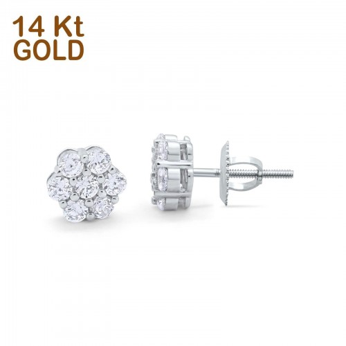 14K Rose Gold Half Eternity Round Simulated Cubic Zirconia Hoop Huggie Earrings