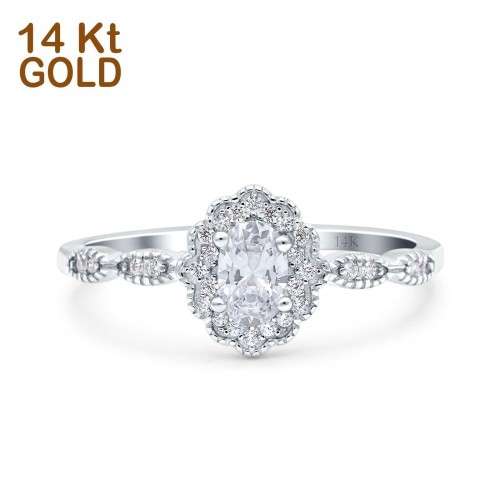 14K Rose Gold Halo Art Deco Oval Bridal Simulated CZ Wedding Engagement Ring Size-7 14K Gold
