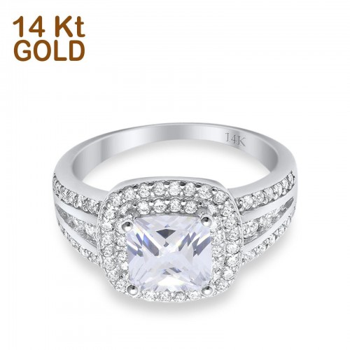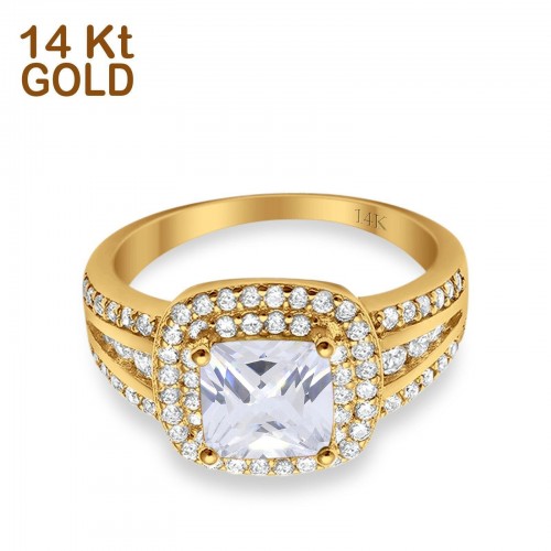 14K Rose Gold Halo Art Deco Wedding Ring Princess Cut Round Simulated CZ Size-7 14K Gold