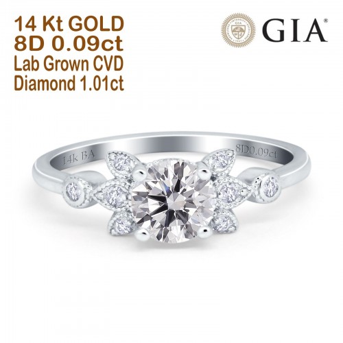 14K Rose Gold Halo Round GIA Certified 6.5mm D VS1 1.01ct Lab Grown CVD Diamond Engagement Wedding Ring Size 6.5