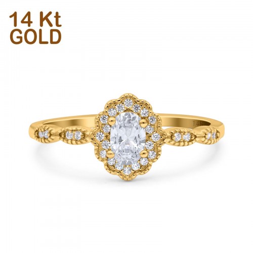 14K Rose Gold Halo Vintage Floral Art Deco Oval Bridal Simulated CZ Wedding Engagement Ring Size 7 14K Gold