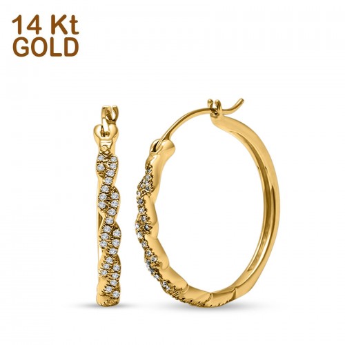 14K Rose Gold Infinity Twisted Design Simulated Cubic Zirconia Round Hoop Earrings