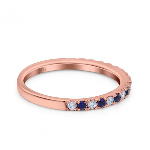 14K Rose Gold Natural Sapphire 0.23ct Diamond 3mm Wedding Band Half Eternity Ring Size 6.5