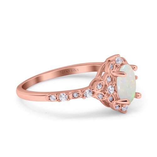 14K Rose Gold Oval Natural White Opal 0.19ct G SI Diamond Engagement Ring Size 6.5