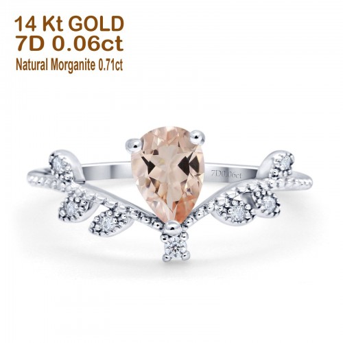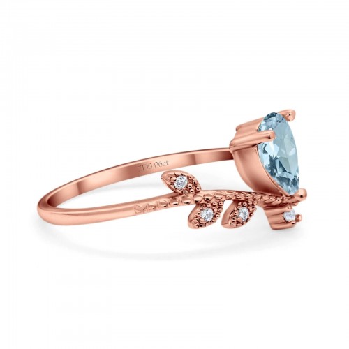 14K Rose Gold Pear Natural Aquamarine 0.77ct G SI Diamond Engagement Ring Size 6.5