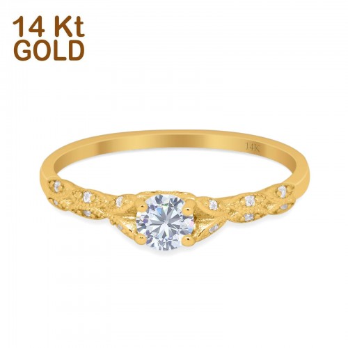 14K Rose Gold Petite Dainty Art Deco Round Simulated CZ Wedding Engagement Ring Size 7 14K Gold