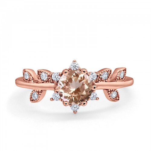 14K Rose Gold Round Natural Morganite G SI 1.02ct Diamond Engagement Ring Size 6.5