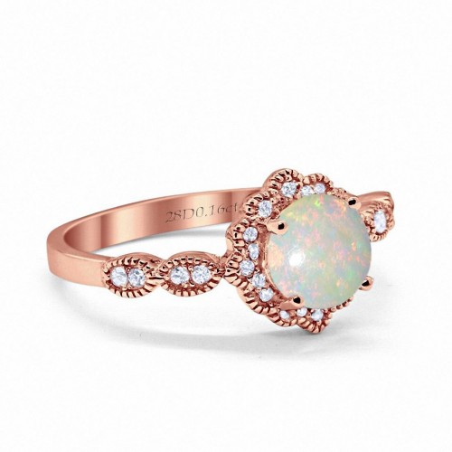 14K Rose Gold Round Natural White Opal 0.16ct G SI Diamond Engagement Ring Size 6.5