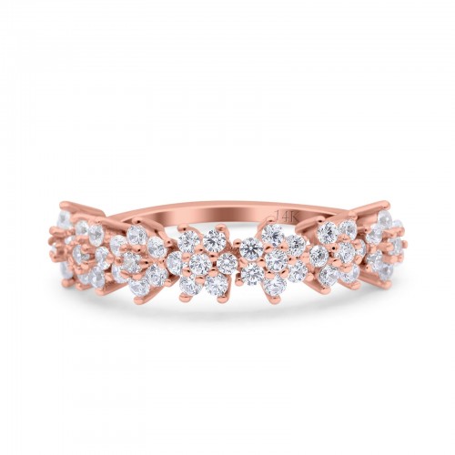 14K Rose Gold Seven Stone Flower Half Eternity Band Round Wedding Engagement Ring Simulated CZ Size-7