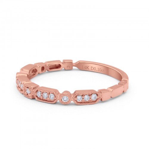 14K Rose Gold Stacking Eternity Art Deco 3mm Wedding Band Natural Diamond Engagement Ring 0.10ct G SI-Size 6.5