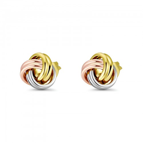 14K Tri Color Gold Knot Earrings (7mm) Best Gift for Her