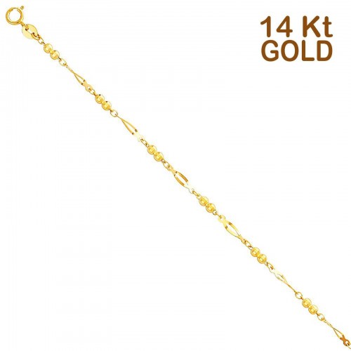14K Tri Color Gold Light Bracelet Chain with Snow Ball 7″ Extension