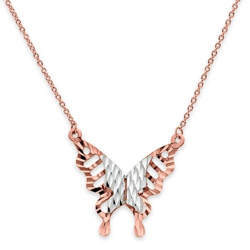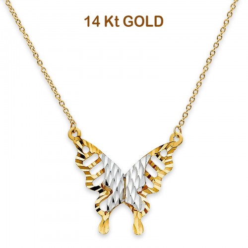 14K Two Tone Gold Butterfly Necklace 17″ + 1″ Extension