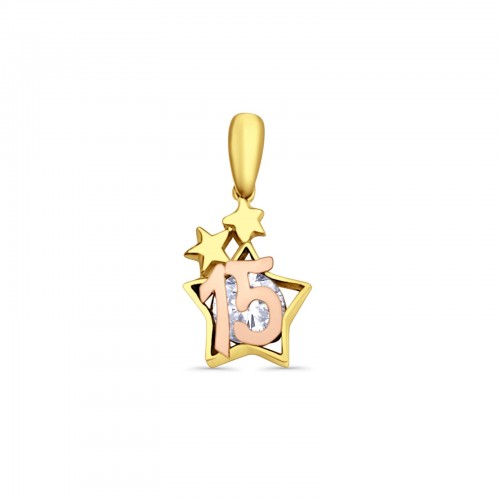14K Two Tone Gold CZ 15Years Pendant 20mmX10mm 1.4 grams