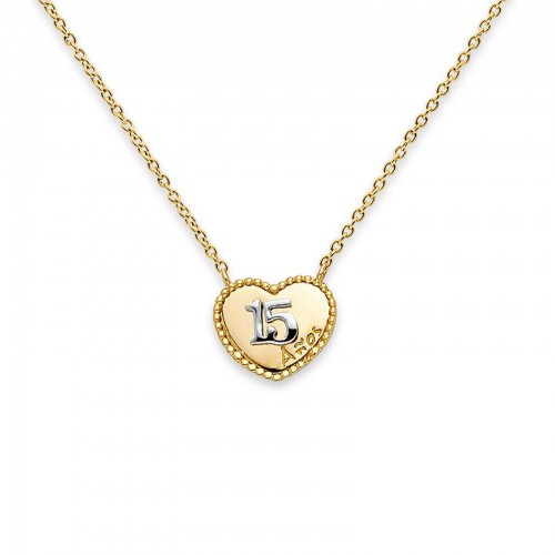 14K Two Tone Gold Sweet 15 Necklace 17 + 1 Inch Extension