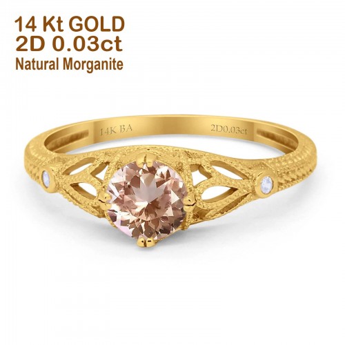 14K White Gold 0.03ct Vintage Design Solitaire Round 6mm G SI Natural White Opal Diamond Engagement Wedding Ring Size 6.5