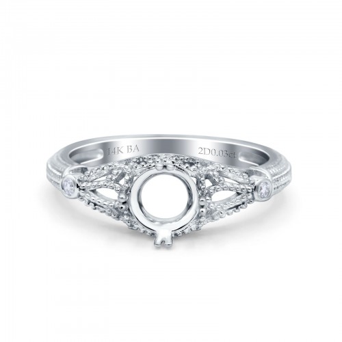 14K White Gold 0.03ct Vintage Design Solitaire Round 6mm G SI Semi Mount Diamond Engagement Wedding Ring Size 6.5
